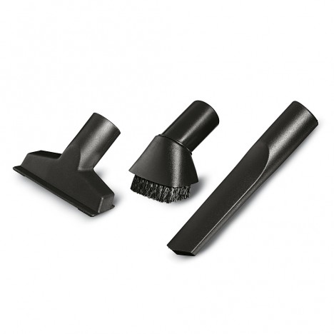 ชุดหัวดูดฝุ่น 3 ชิ้น หัวดูดตามซอก (Crevice nozzle), หัวดูดเบาะ (Upholstery nozzle), และแปรงดูด (Suction brush) ออกแบบมาสำหรับเครื่องดูดฝุ่นทั้งแบบแห้งและแบบเปียก/แห้งของ Kärcher ที่มีขนาดเส้นผ่านศูนย์กลางภายในมาตรฐาน DN 35