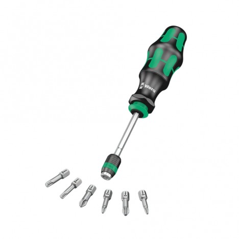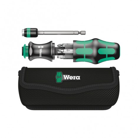 เครื่องมือขนาดกะทัดรัดของ Wera ช่วยให้ใช้งานทั้งเครื่องมือธรรมดาและเครื่องมือไฟฟ้าได้พร้อมกัน ด้ามจับ/ระบบใบมีดแบบถอดเปลี่ยนได้ ดีไซน์กะทัดรัด พร้อมปลายใบมีดหลากหลายขนาดในพื้นที่แคบ ช่วยให้ผู้ใช้คล่องตัวและคล่องตัวมากขึ้น เหมาะสำหรับดอกสว่านที่มีหัวหกเหลี่ยมขนาด 1/4 นิ้ว ตามมาตรฐาน DIN ISO 1173-C 6.3 และ E 6.3 (ISO 1173) และชุดเชื่อมต่อ Wera ซีรีส์ 1 และ 4 มาพร้อมอะแดปเตอร์ ดาบปลายปืน และเทคโนโลยี Rapidaptor ด้ามจับ Kraftform พร้อมคุณสมบัติป้องกันการกลิ้ง ส่วนประกอบหลายชิ้นเพื่อการขันสกรูที่ออกแบบตามหลักสรีรศาสตร์โดยเฉพาะ แม็กกาซีนในตัวสำหรับเก็บดอกสว่าน ใบมีดดาบปลายปืนแบบยืดหดได้ ซึ่งสามารถหย่อนลงในด้ามจับได้ ร่วมกับหัวจับแบบปลดเร็ว ช่วยให้ทำงานด้วยมือได้อย่างรวดเร็วแม้ในสภาพการติดตั้งที่จำกัดเมื่อใบมีดหดกลับ ใบมีดสามารถยืดออกได้เพียงแค่กดปลอกล็อก ที่จับดาบปลายปืนสามารถใช้เป็นไขควงได้อย่างเต็มประสิทธิภาพ ใบมีดดาบปลายปืนสามารถถอดออกและใช้เป็นอะแดปเตอร์สำหรับเครื่องมือไฟฟ้าได้ หรือจะหดกลับเข้าที่เดิมก็ได้ มาพร้อมกระเป๋าคาดเข็มขัดที่ใช้งานได้สะดวก