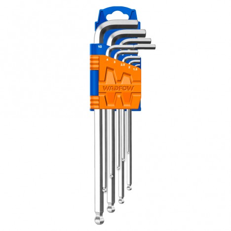 ชุดประแจหกเหลี่ยม 9 ชิ้น ผลิตจากเหล็ก โครมวานาเดียม (Cr-V) พร้อมการชุบโครเมียมเพื่อความทนทานต่อสนิม มีดีไซน์แบบแขนยาวพิเศษและปลายหัวบอลที่ช่วยให้สามารถขันสกรูหกเหลี่ยมได้ในมุมเอียงถึง 25 องศา ทำให้เข้าถึงพื้นที่ที่เข้าถึงยากได้อย่างง่ายดาย