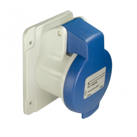 เต้ารับตัวเมียแบบฝังตรง/ติดตั้งแผงในกลุ่มผลิตภัณฑ์ PratiKa หรือ Mureva PK ที่ถูกออกแบบตามมาตรฐานสากล IEC 60309-1/2 เพื่อการเชื่อมต่อกระแสไฟฟ้าสลับในสภาพแวดล้อมทางอุตสาหกรรม เต้ารับมีขั้วต่อแบบ 2P+E (เฟส, นิวทรัล และ สายดิน) รองรับกระแสไฟฟ้าสูงสุด 32A ที่แรงดันไฟฟ้าใช้งาน 200 ถึง 250 โวลต์ AC มีตำแหน่งขาต่อสายดินอยู่ที่ 6 นาฬิกา ซึ่งบ่งชี้ถึงแรงดันไฟฟ้า 200-250V ตามรหัสสี สีฟ้า ตัวเรือนทำจากโพลิเมอร์วิศวกรรมที่สามารถดับไฟได้เอง (Self-extinguishing engineering polymer) และใช้ขั้วต่อแบบ สกรูยึด (Captive screws) ทำให้มั่นใจได้ในการเชื่อมต่อที่แข็งแรงและปลอดภัย