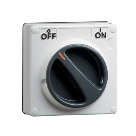 สวิตช์กันน้ำ (Isolator Switch) แบบติดตั้งบนพื้นผิว (Surface Mounted) ชนิด 3 ขั้ว (3-Pole) ที่ใช้การทำงานแบบ หมุน (Rotary) ออกแบบมาสำหรับระบบไฟฟ้า 3 เฟส ที่มีพิกัดกระแส 20 A และแรงดันไฟฟ้าสูงสุด 500V AC จุดเด่นคือความทนทานต่อสภาพแวดล้อมภายนอกและอุตสาหกรรมด้วยระดับการป้องกัน IP66 และการออกแบบที่กะทัดรัด