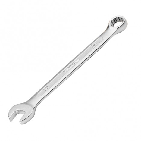 เป็นเครื่องมือช่างประเภทประแจแหวนข้างปากตาย (Combination Spanner) ที่มีปลายทั้งสองด้านใช้งานต่างกัน: ด้านหนึ่งเป็นปากตาย (Open-end) และอีกด้านหนึ่งเป็นแหวน (Box-end) ซึ่งทั้งสองด้านมีขนาด 30 มม. (30mm) เท่ากัน ทำให้มีความยืดหยุ่นในการใช้งานสำหรับการขันและคลายน็อตหรือสลักเกลียวในพื้นที่และมุมที่แตกต่างกัน ตัวประแจผลิตจากวัสดุเหล็กโครมวานาเดียม (Cr-V) คุณภาพสูง ทำให้มีความแข็งแรงทนทานเป็นพิเศษ สามารถทนต่อแรงบิดสูง และมีการเคลือบผิวด้วยโครเมียมแบบขัดเงาพร้อมผิวเคลือบด้าน (Matt finish) เพื่อเพิ่มการป้องกันการกัดกร่อนและให้ความรู้สึกในการจับที่ดีขึ้น