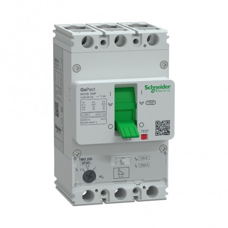 SCHNEIDER G80N3E630 คือ เซอร์กิตเบรกเกอร์แบบโครงสร้างหล่อ (Moulded Case Circuit Breaker - MCCB) ชนิด 3 โพล (3P) ในกลุ่มผลิตภัณฑ์ GoPact MCCB 800 ใช้เฟรมเบรกเกอร์ขนาด 800A ที่พิกัดกระแสใช้งาน 630A มีความสามารถในการตัดกระแสลัดวงจรสูงสุด 50 kA ที่ 415 V AC 50/60 Hz จุดเด่นคือติดตั้งมาพร้อมกับ หน่วยปลดวงจรแบบอิเล็กทรอนิกส์ (ETU - Electronic Trip Unit) ทำให้สามารถปรับตั้งค่าการป้องกันกระแสเกินได้อย่างกว้างขวางและแม่นยำ เป็นอุปกรณ์สำคัญสำหรับระบบจ่ายไฟขนาดใหญ่ที่ต้องการการป้องกันที่มีความละเอียดสูงและยืดหยุ่น