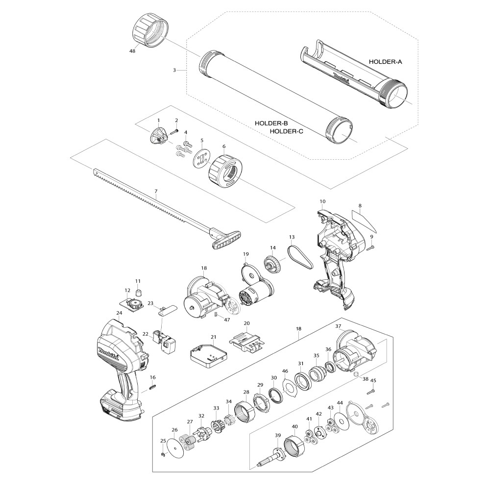 อะไหล่ ปืนยิงซิลิโคนไร้สาย MAKITA รุ่น DCG180RFE