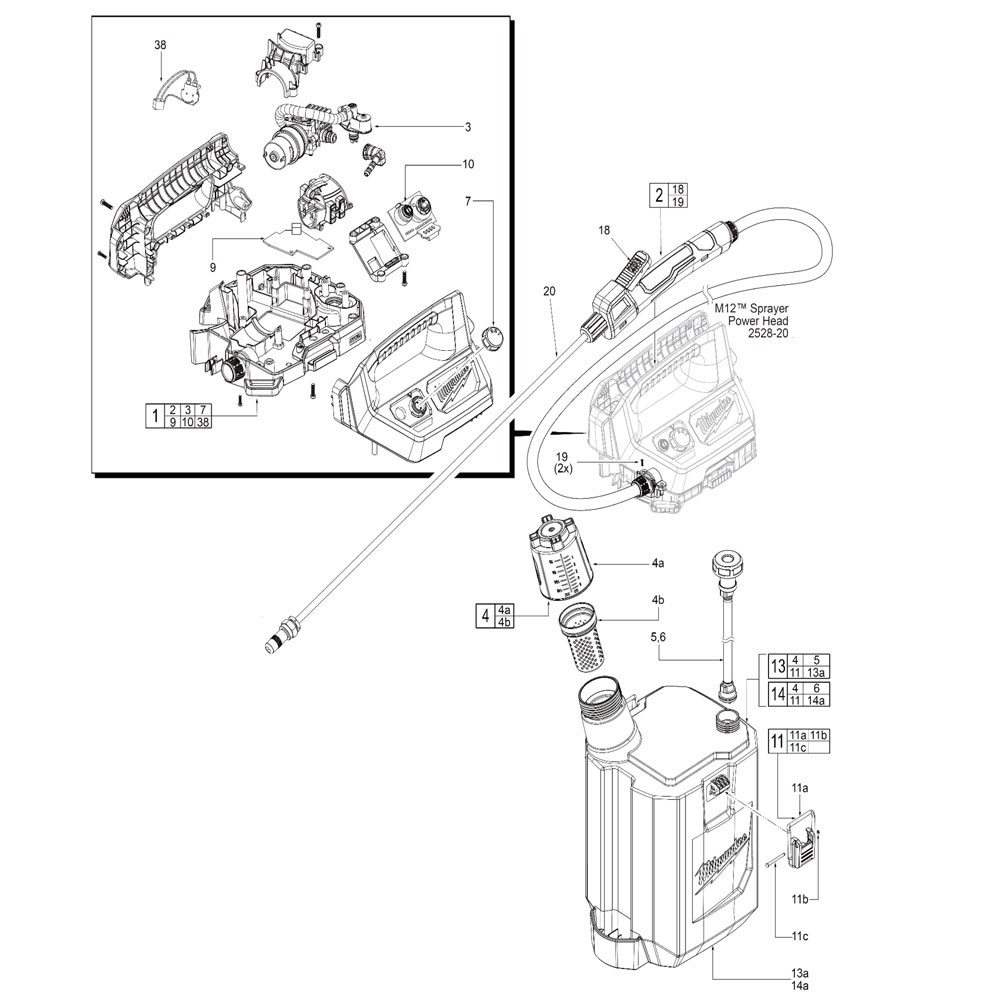อะไหล่ เครื่องพ่นยาไร้สาย Milwaukee รุ่น BHCS7L-0 ถัง 7 ลิตร 12 โวลต์ (ตัวเปล่า)